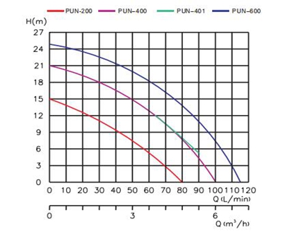 Máx. Flujo ( L/ min ) 115  Flujo nominal ( l/min ) 50 Máx. Cabeza (m) 25 Altura nominal (m) 20 Diámetro de entrada  (mm) 25 Diámetro de salida (mm) 25 Potencia de entrada (W) 880 Potencia de salida (W) 600 ​